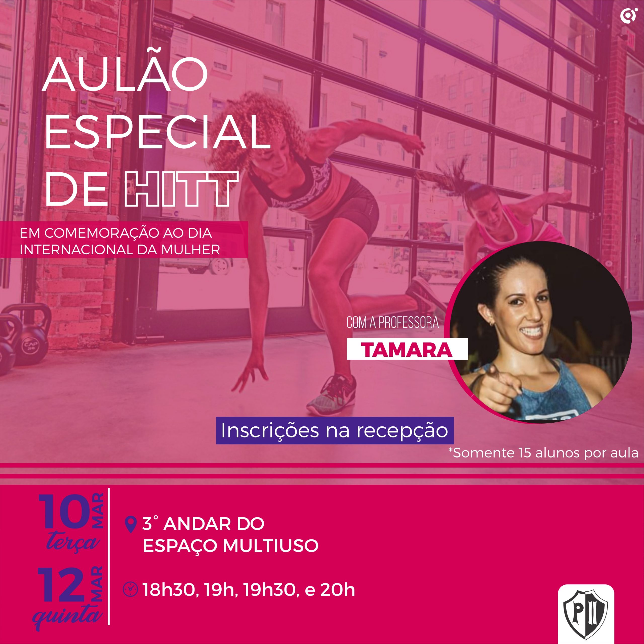 Em comemoração ao Dia Internacional da Mulher, o Clube Dom Pedro realiza um Aulão especial de Hitt com a professora Tamara. As inscrições já estão sendo feitas na recepção do Clube.